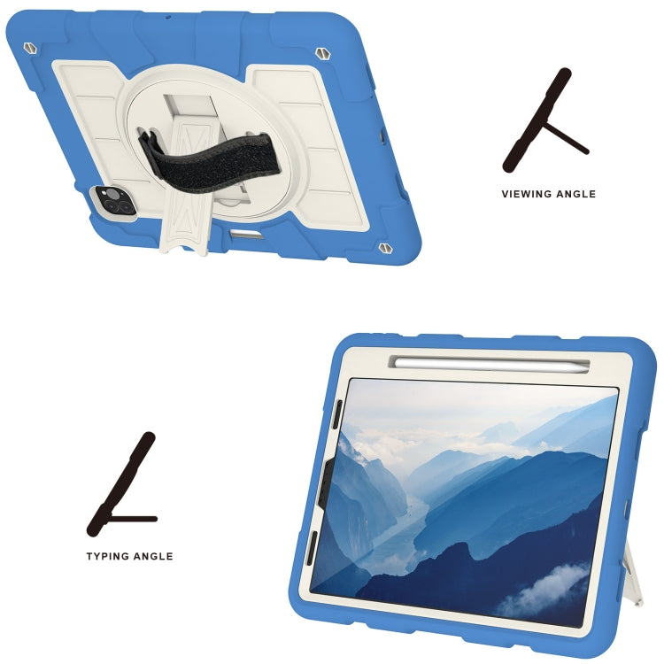 For iPad Air 2020 / 2022 10.9 Silicone Hybrid PC Shockproof Tablet Case with Shoulder Strap(Azure Blue)