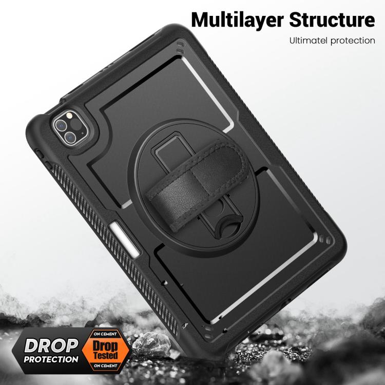 For iPad Air 2022 10.9 / Pro 11 2022 Honeycomb Hand Grip Turntable Stand Tablet Case(Black)