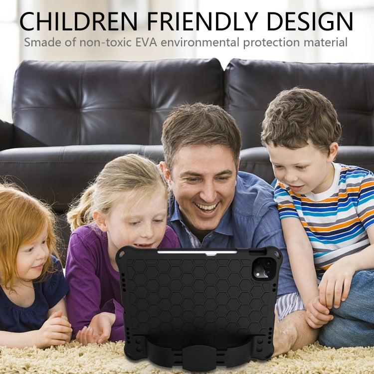 For iPad Air 2022 / 2020 10.9 Honeycomb Design EVA + PC Material Four Corner Anti Falling Flat Protective Shell with Strap(Black+Black)