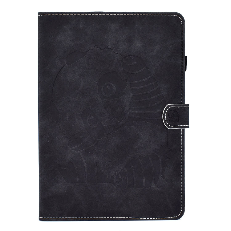 For iPad Air 2022 / 2020 10.9 Panda Embossing Pattern Horizontal Flip PU Leather Case with Holder & Card Slot & Anti-skid Strip(Black)