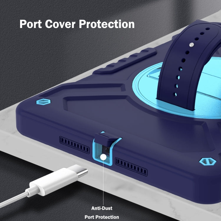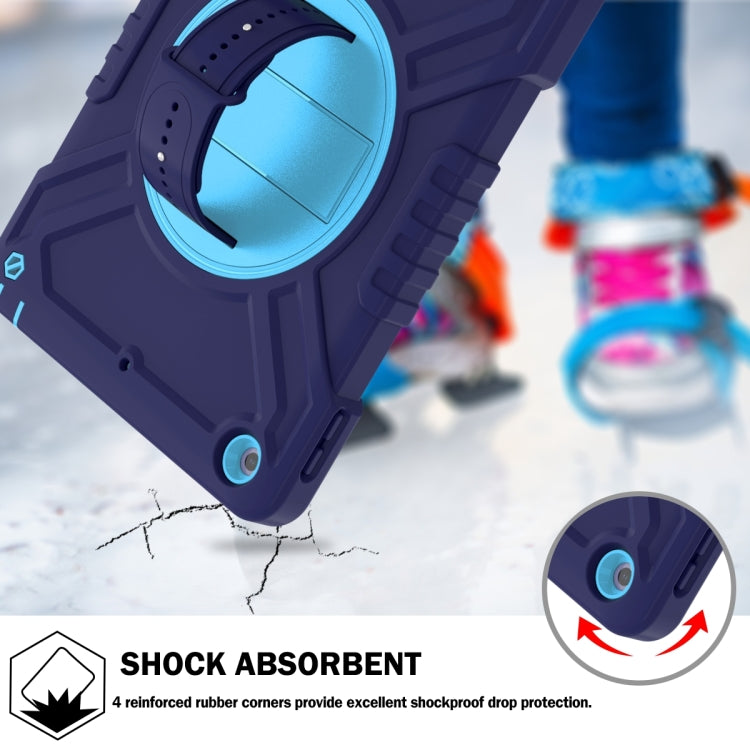 For iPad Air / Air 2 / 9.7 2018 / 2017 X Rotation PC Hybrid Silicone Tablet Case with Strap(Navy Sky Blue)