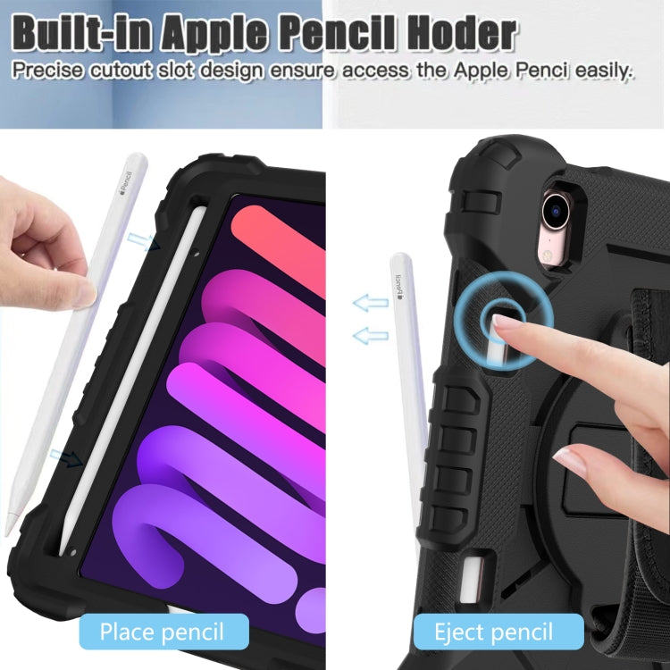 For iPad mini 2024 / mini 6 Contrast Color Robot Silicone + PC Tablet Case with Shoulder Strap(Black)