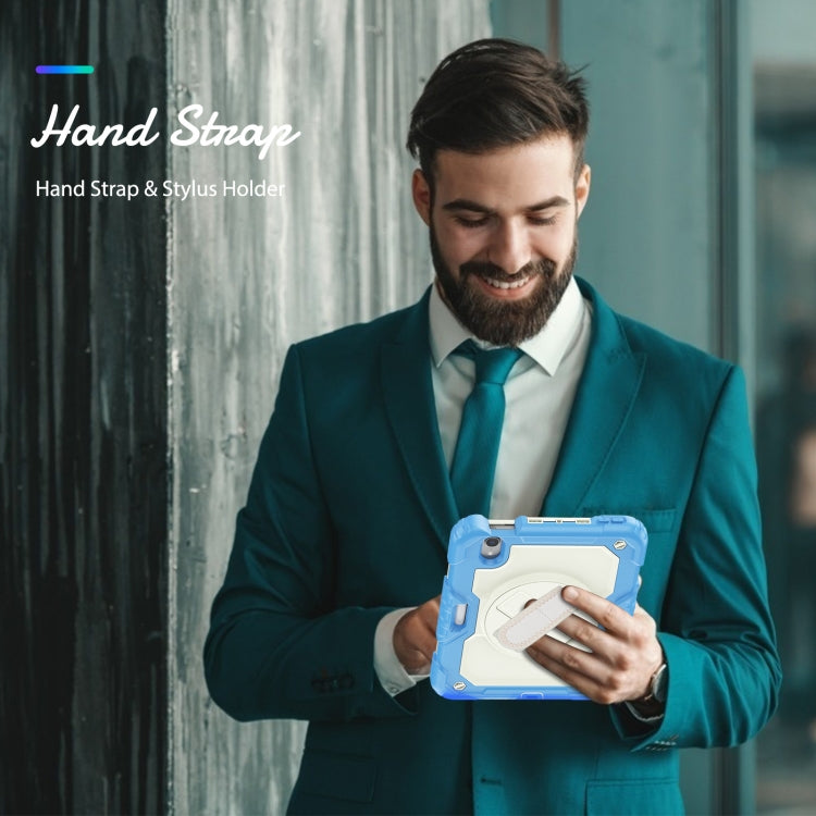 For iPad mini 2024 / mini 6 Shockproof Silicone + PC Protective Tablet Case with Holder & Shoulder Strap & Pen Slot(Beige + Cyan)
