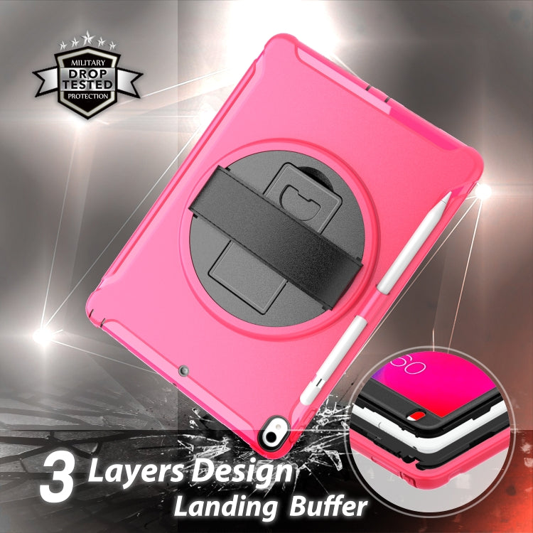 For iPad Pro 10.5 inch 360 Degree Rotation PC+TPU Protective Cover with Holder & Hand Strap(Rose Red)