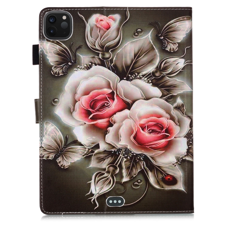 For iPad Pro 11 (2020) Plain Weave Texture Colored Drawing Horizontal Flip Leather Tablet Case, with Sleep / Wake-up Function & Holder & Card Slo & Wallet(Rose On Black)