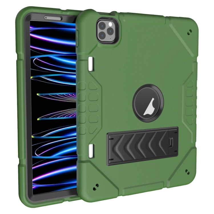 For iPad Pro 11 2022 / 2021 / 2020 Armor Holder Silicone Hybrid PC Tablet Case(Army Green Black)