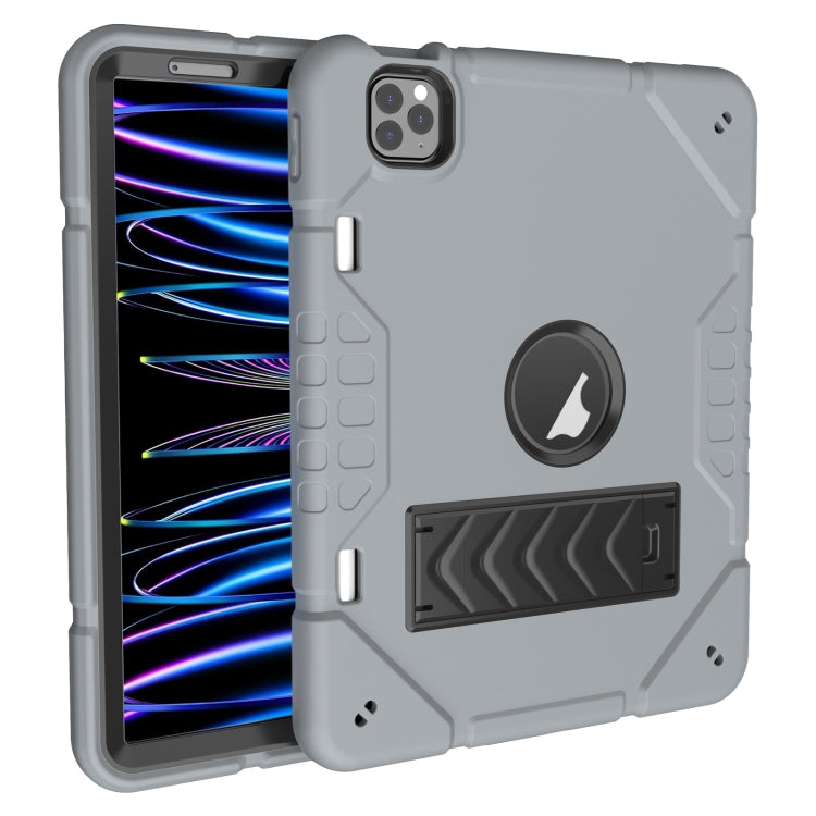 For iPad Pro 11 2022 / 2021 / 2020 Armor Holder Silicone Hybrid PC Tablet Case(Grey Black)
