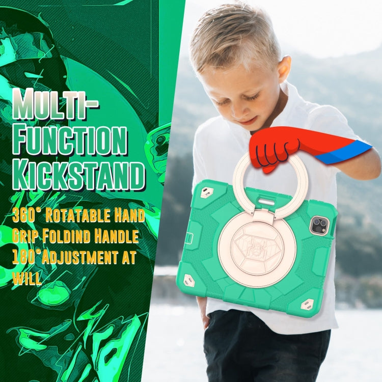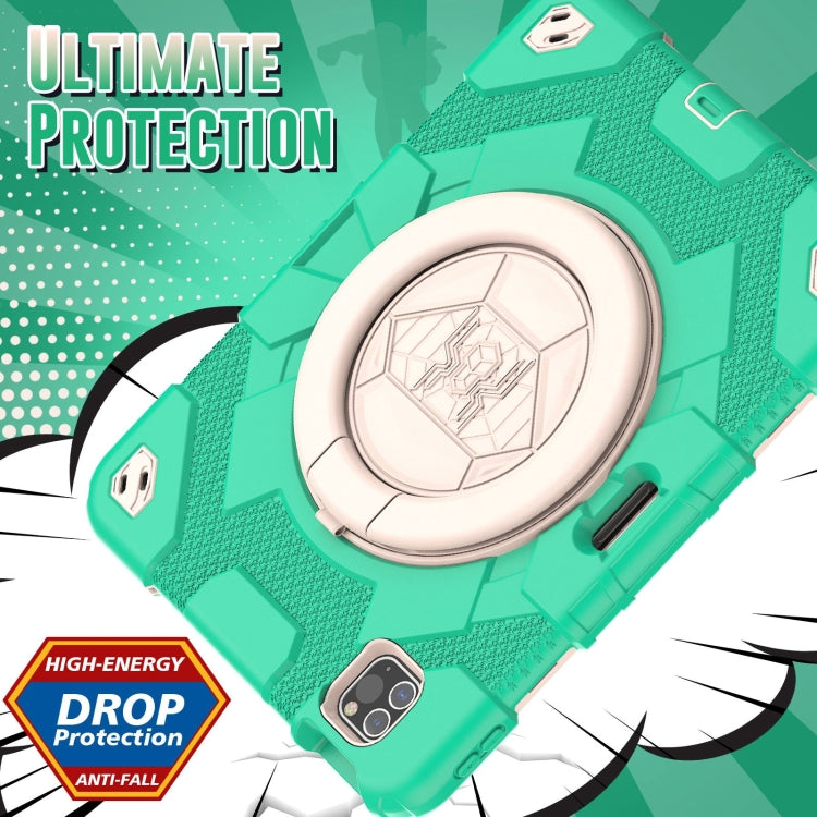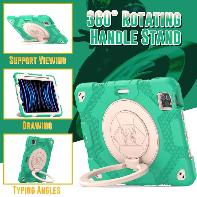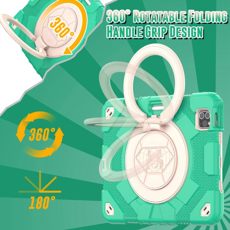 For iPad Pro 11 2022 / 2021 / 2020 Spider Rotation Handle Silicone Hybrid PC Tablet Case(Cyan Beige)
