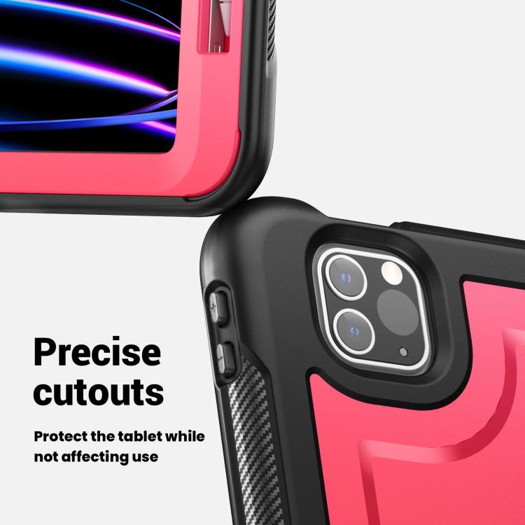 For iPad Pro 11 2022 / Air 10.9 2022 Honeycomb Hybrid Tablet Case with Handle Holder & Strap(Rose Red)