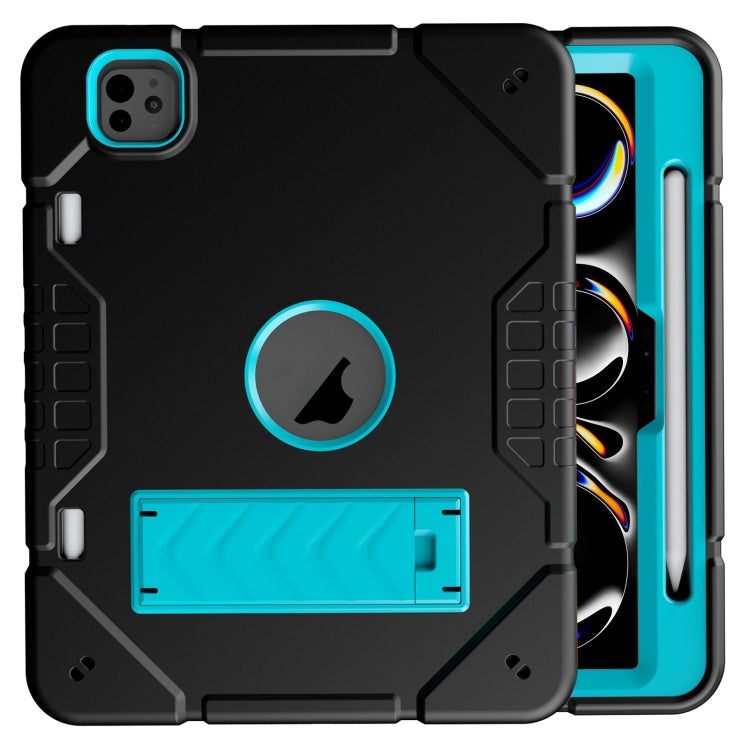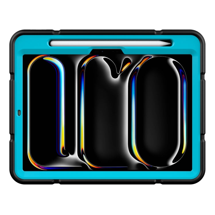 For iPad Pro 11 2024 Armor Holder Silicone Hybrid PC Tablet Case(Black Blue)