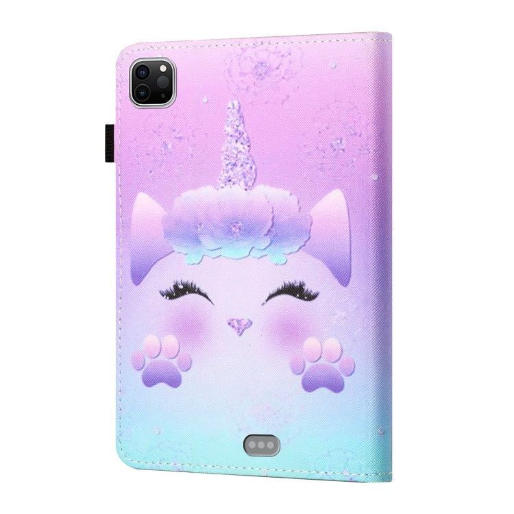 For iPad Pro 11 2024 Coloured Drawing Stitching Smart Leather Tablet Case(One Horned Cat)