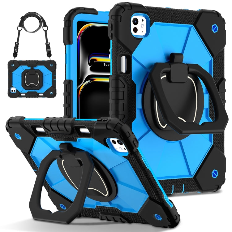 For iPad Pro 11 2024 Contrast Color Robot Silicone Hybrid PC Tablet Case(Black Blue)