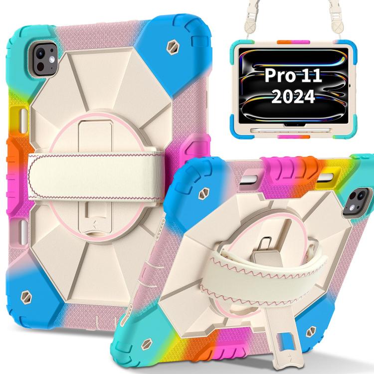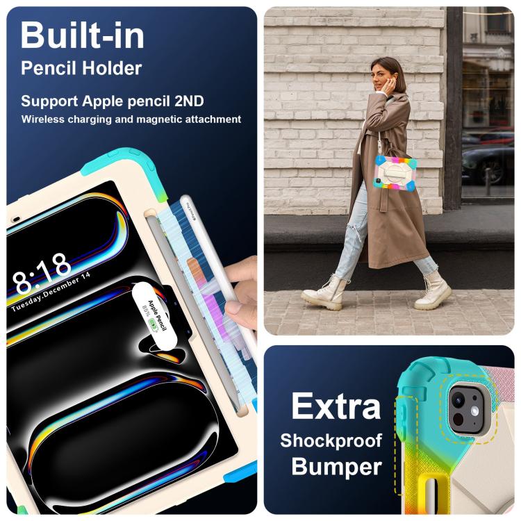For iPad Pro 11 2024 Contrast Color Robot Silicone Hybrid PC Tablet Case(Colorful Blue)