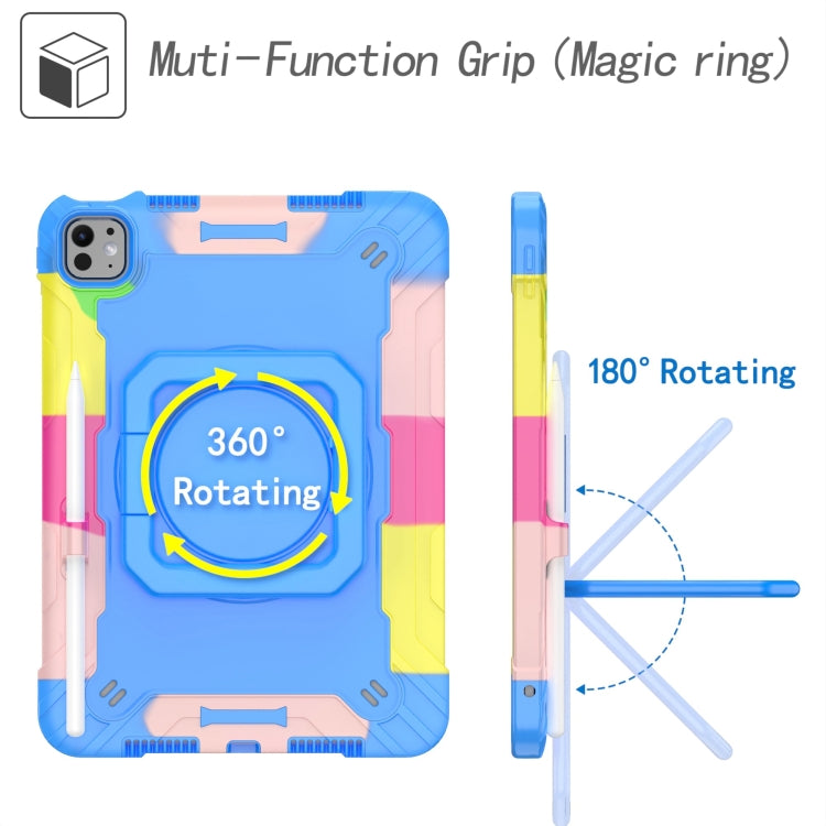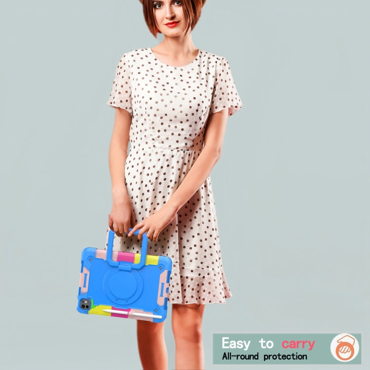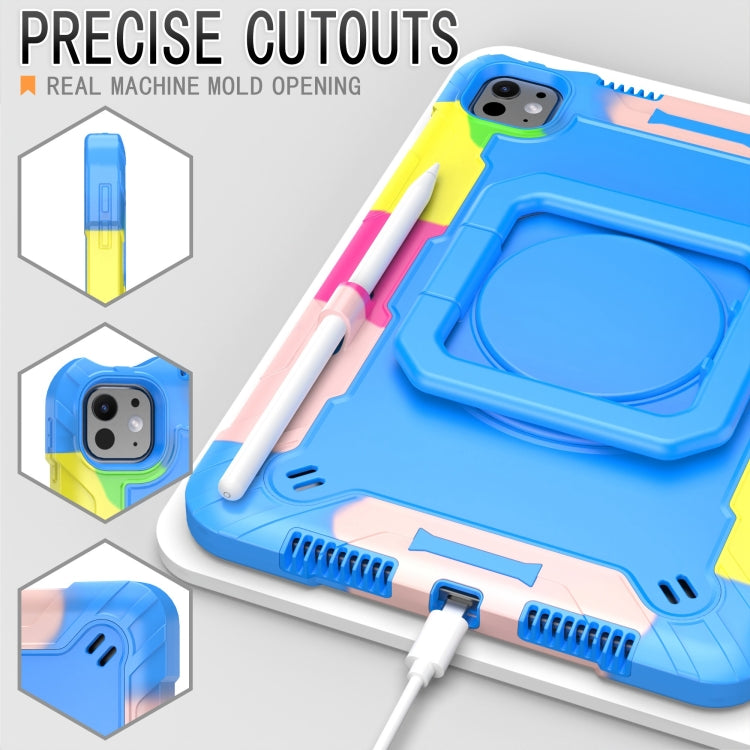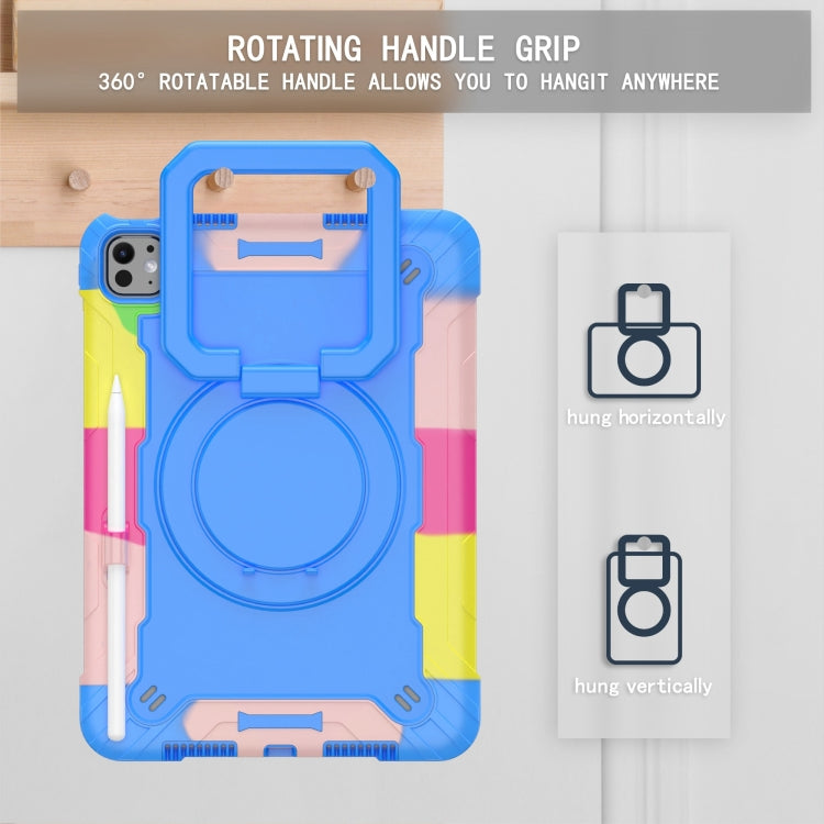 For iPad Pro 11 2024 Handle Grip Holder Silicone Hybrid PC Tablet Case with Strap(Camouflage Blue)