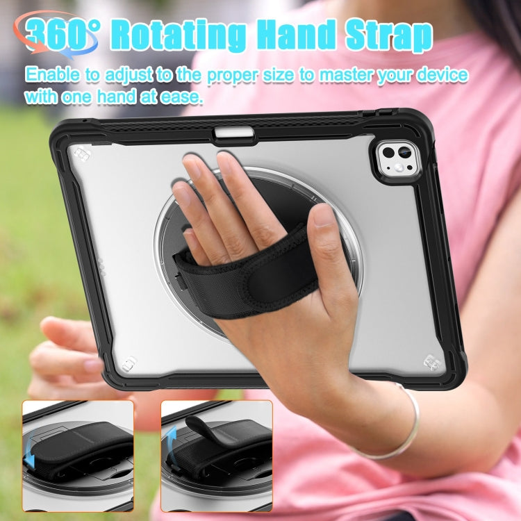 For iPad Pro 11 2024 Heavy Duty Hybrid Tablet Case with Hand Grip & Strap(Black Transparent)