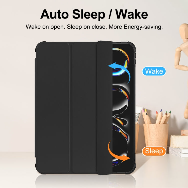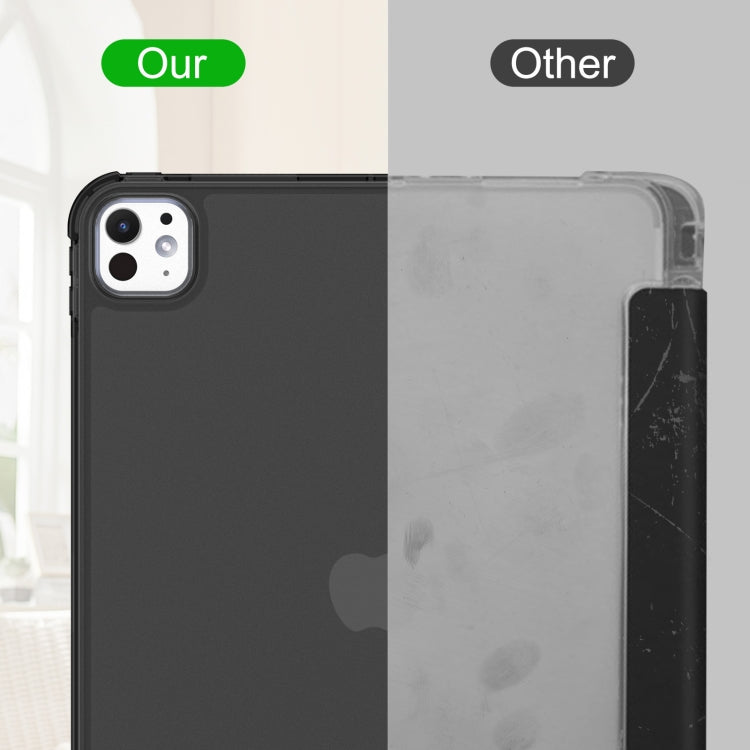 For iPad Pro 11 2024 Tri-fold Holder TPU Cover Frosted Leather Smart Tablet Case withh Pen Slot(Black)