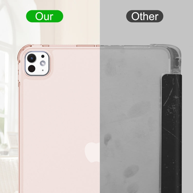 For iPad Pro 11 2024 Tri-fold Holder TPU Cover Frosted Leather Smart Tablet Case withh Pen Slot(Rose Gold)