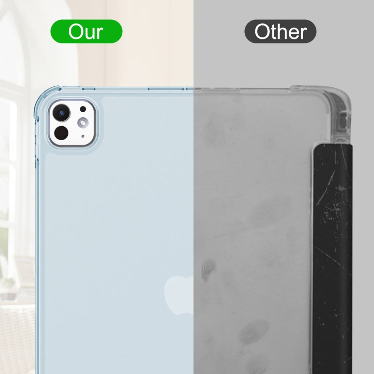 For iPad Pro 11 2024 Tri-fold Holder TPU Cover Frosted Leather Smart Tablet Case withh Pen Slot(Sky Blue)