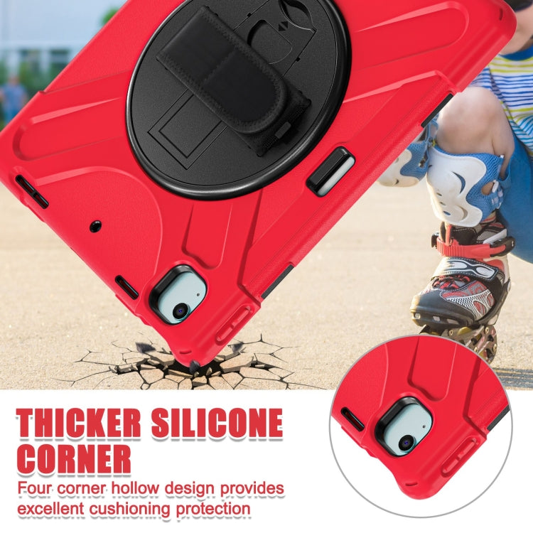For iPad Pro 12.9 2022 / 2021 Rotatable Holder Silicone Hybrid PC Tablet Case with Shoulder Strap(Red)