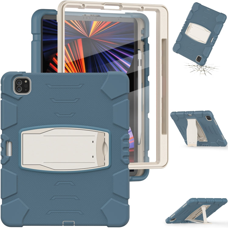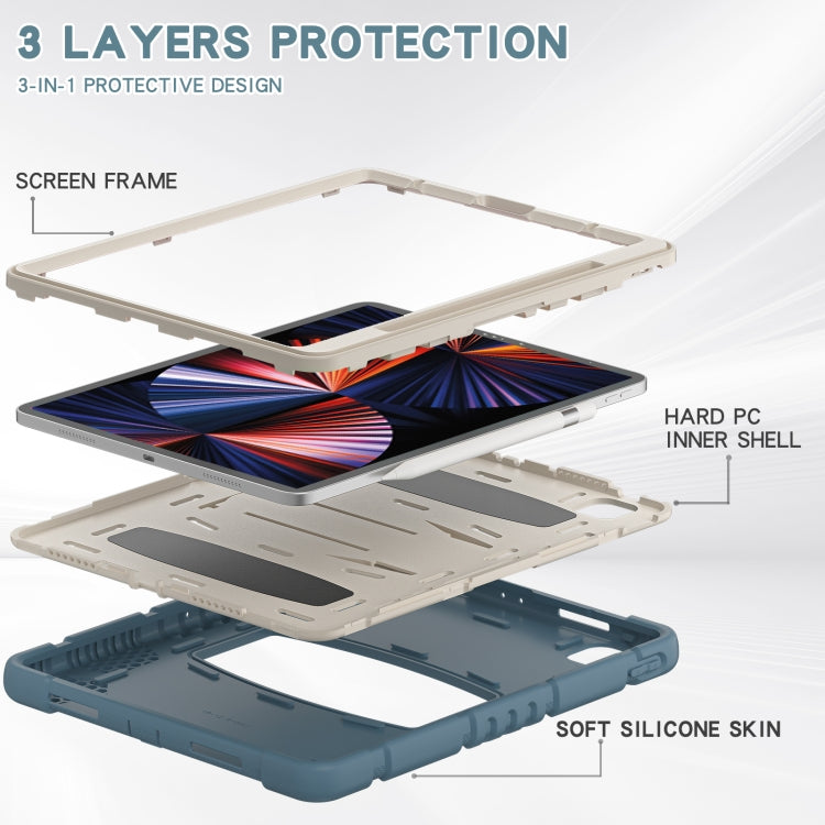 For iPad Pro 12.9 2022 / 2021 3-Layer Protection Screen Frame + PC + Silicone Shockproof Combination Tablet Case with Holder(Cornflower Blue)