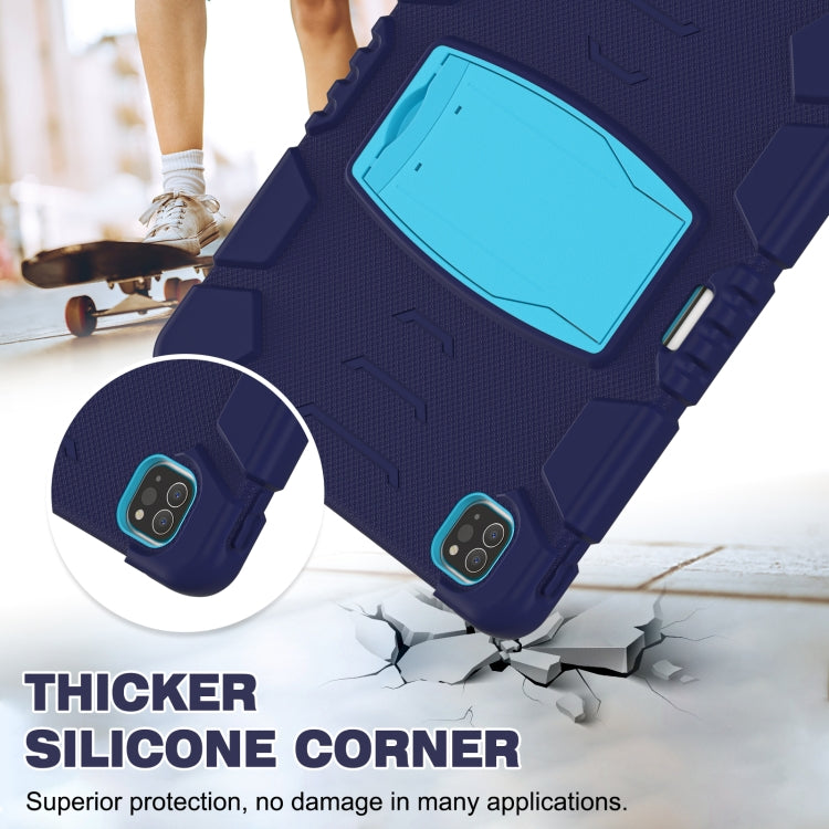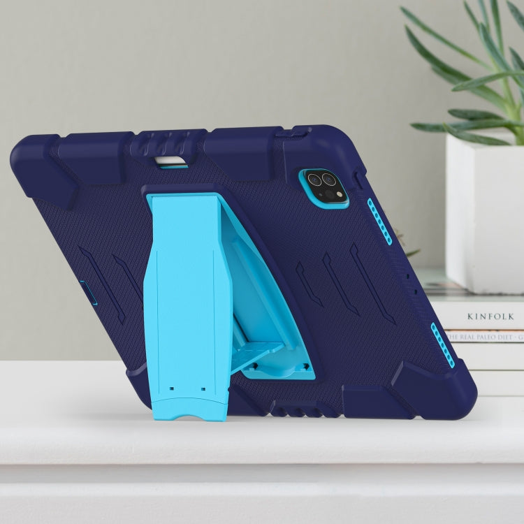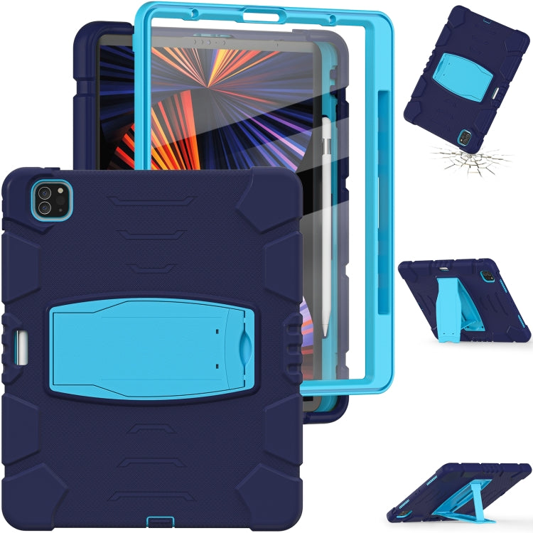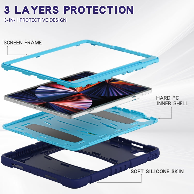 For iPad Pro 12.9 2022 / 2021 3-Layer Protection Screen Frame + PC + Silicone Shockproof Combination Tablet Case with Holder(NavyBlue+Blue)