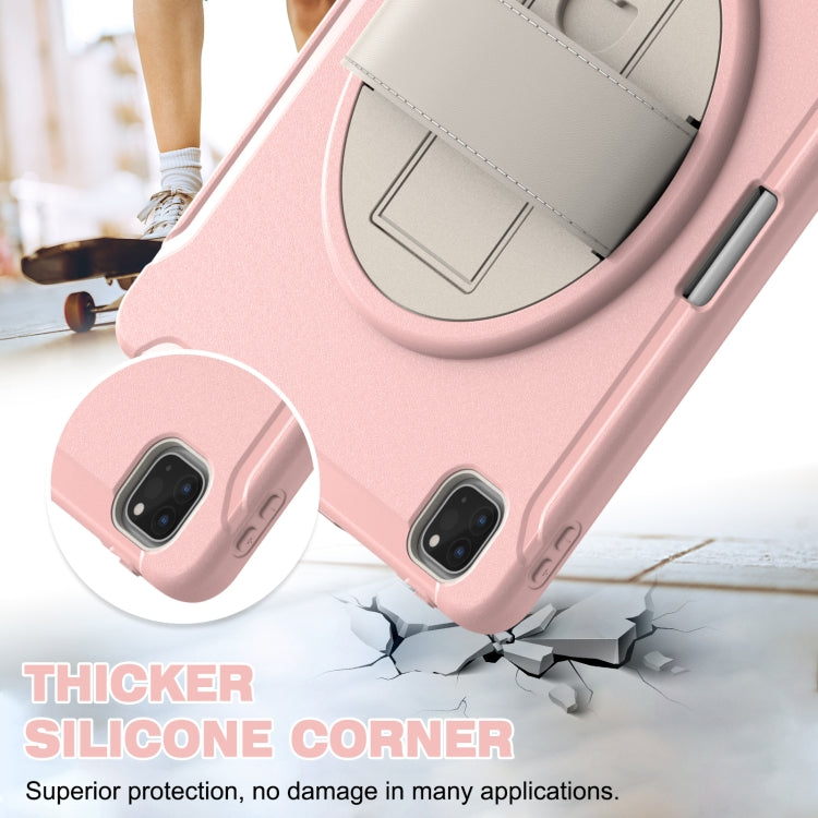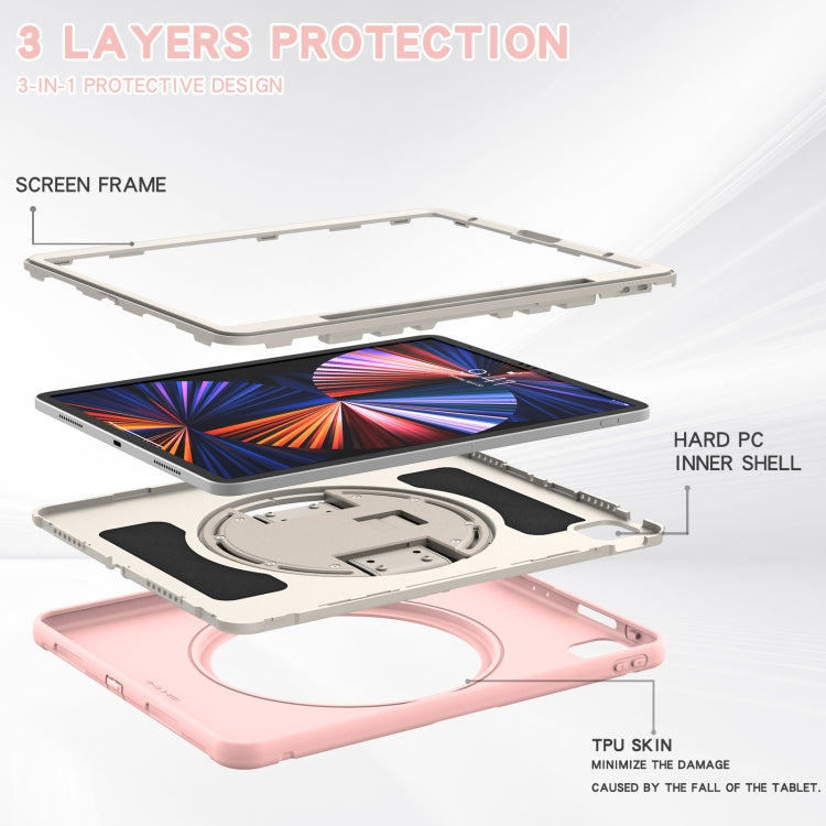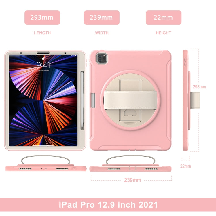 For iPad Pro 12.9 2022 / 2021 360 Degree Rotation PC + TPU Protective Tablet Case with Holder & Hand-strap(Cherry Blossoms Pink)
