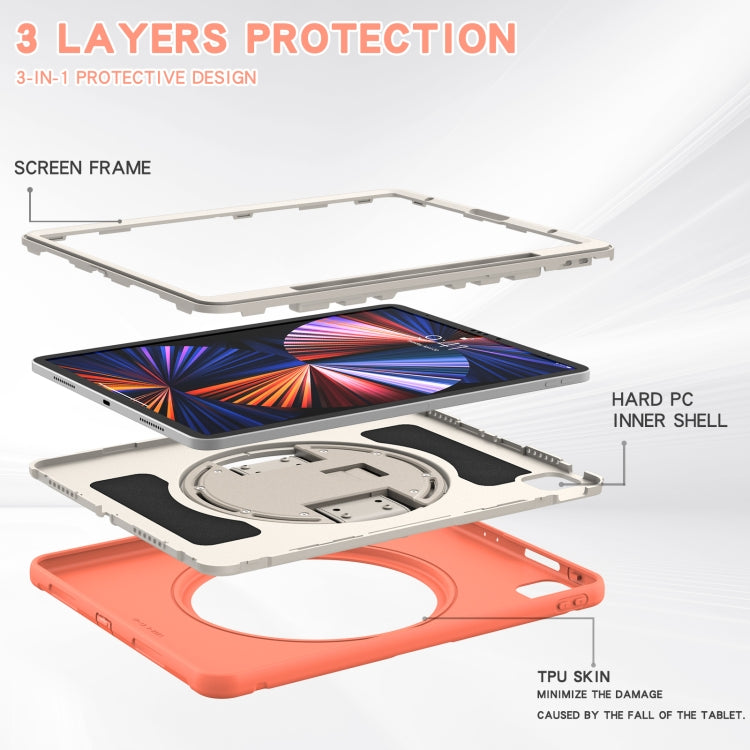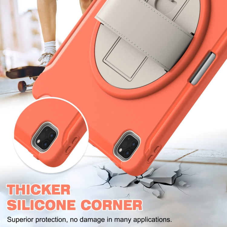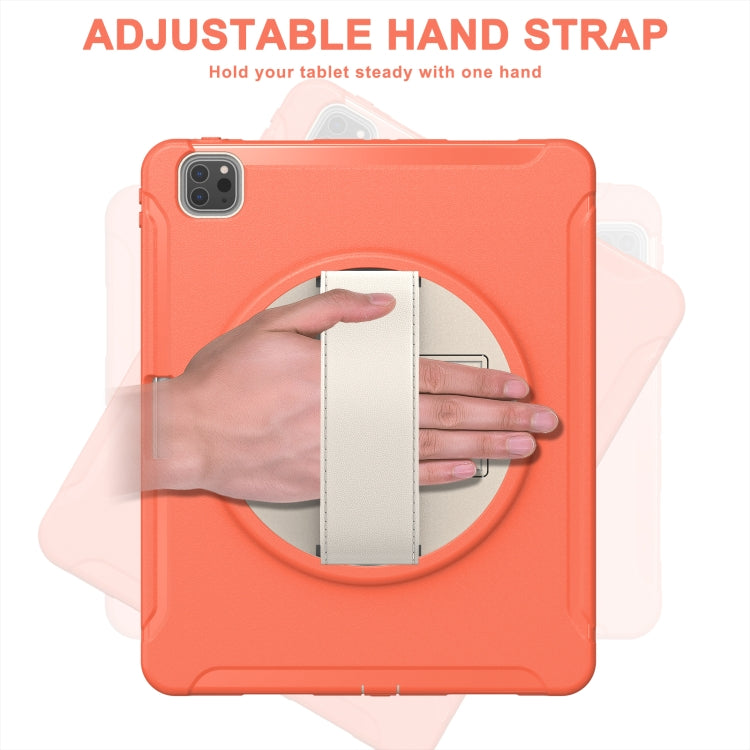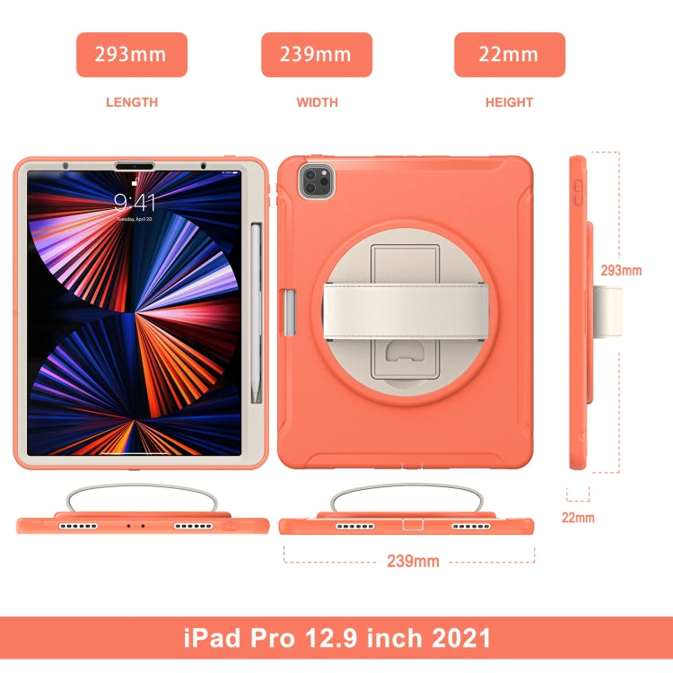 For iPad Pro 12.9 2022 / 2021 360 Degree Rotation PC + TPU Protective Tablet Case with Holder & Hand-strap(Coral Orange)