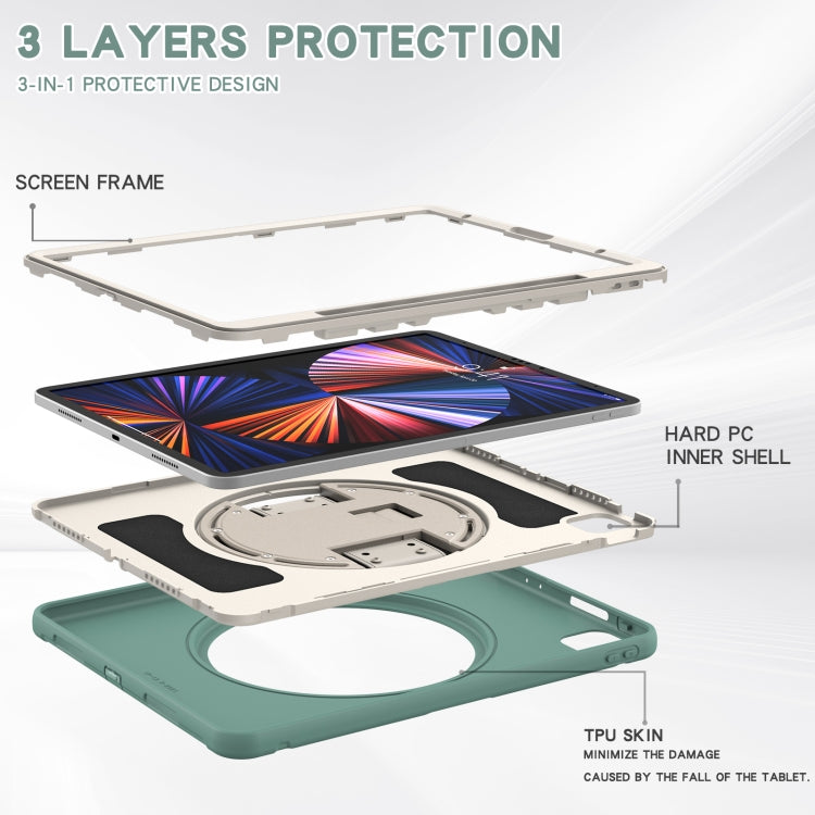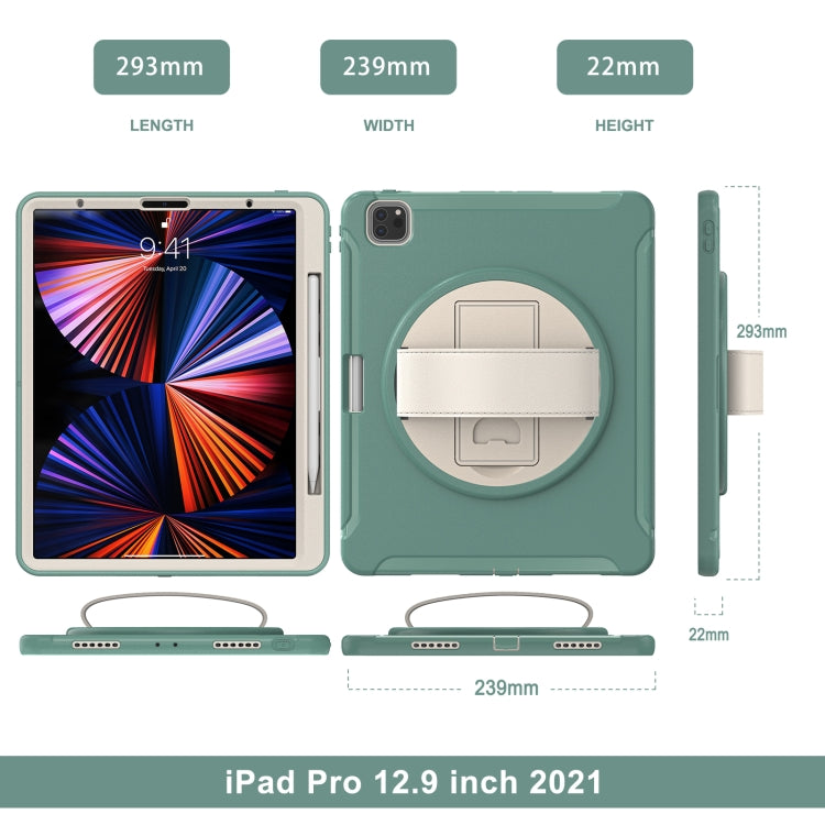 For iPad Pro 12.9 2022 / 2021 360 Degree Rotation PC + TPU Protective Tablet Case with Holder & Hand-strap(Jade Green)