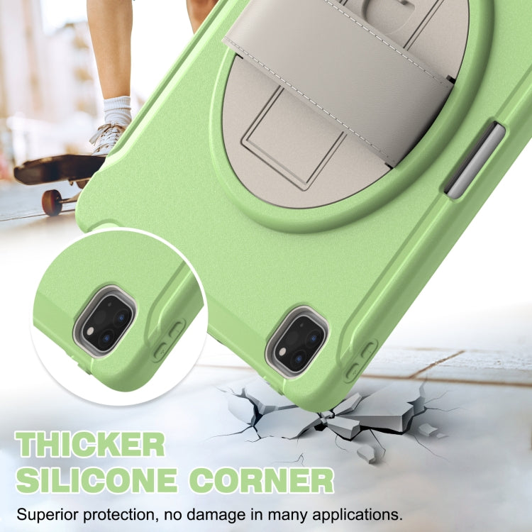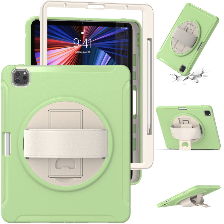 For iPad Pro 12.9 2022 / 2021 360 Degree Rotation PC + TPU Protective Tablet Case with Holder & Hand-strap(Matcha Green)