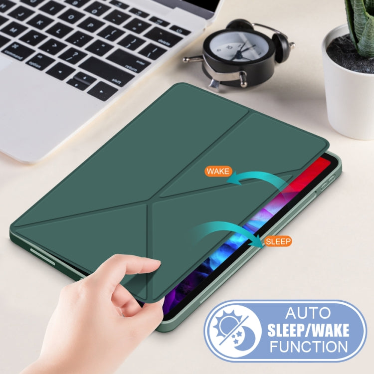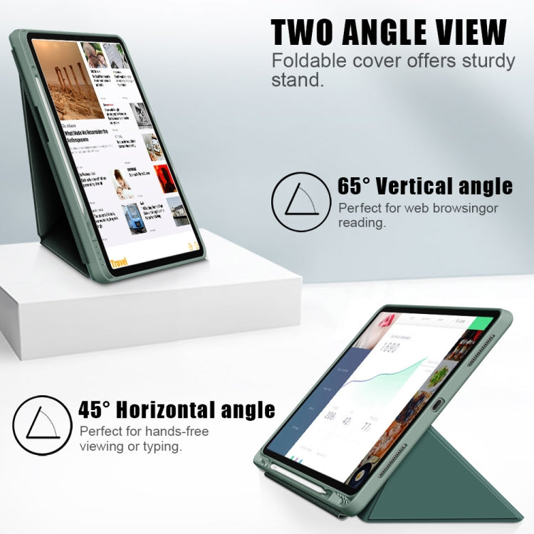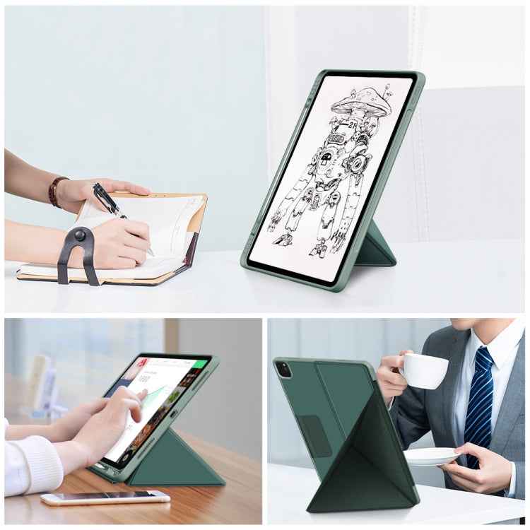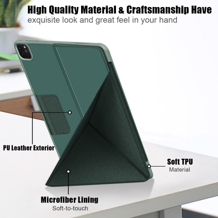 For iPad Pro 12.9 2022 / 2021 Multi-folding Horizontal Flip PU Leather Shockproof Tablet Case with Holder & Sleep / Wake-up Function(Dark Green)