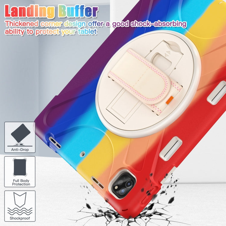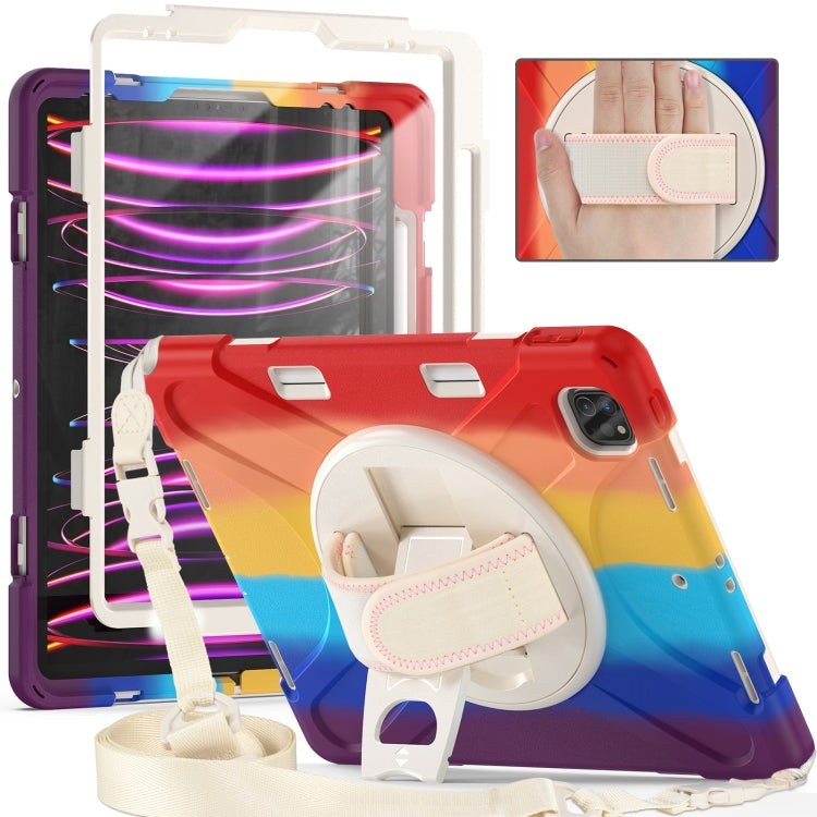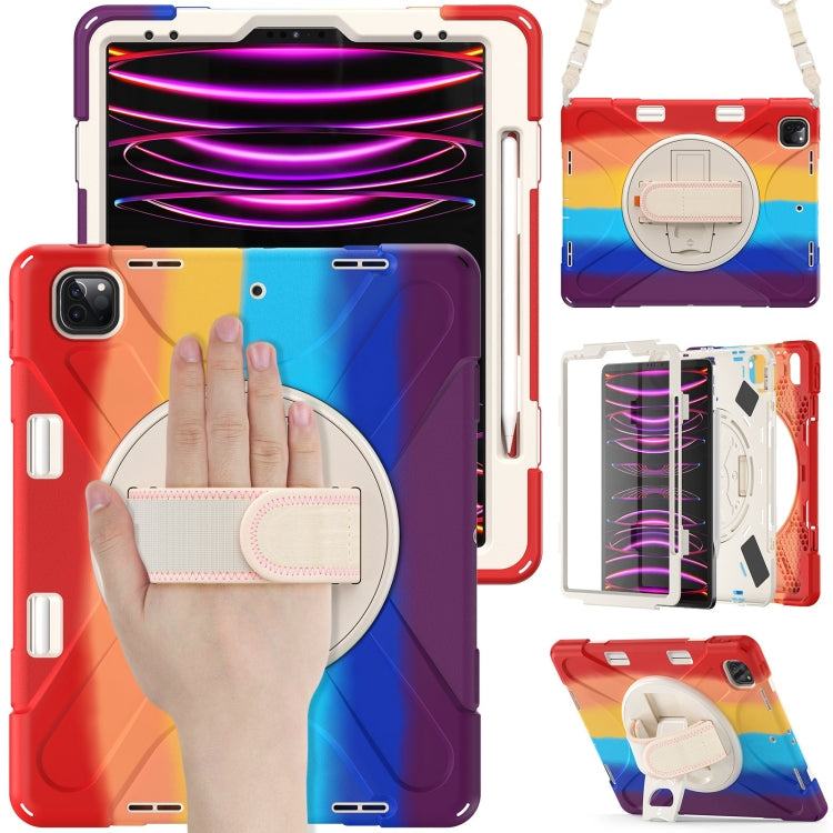 For iPad Pro 12.9 2022 / 2021 Rotatable Holder Silicone Hybrid PC Tablet Case with Shoulder Strap(Colorful Red)