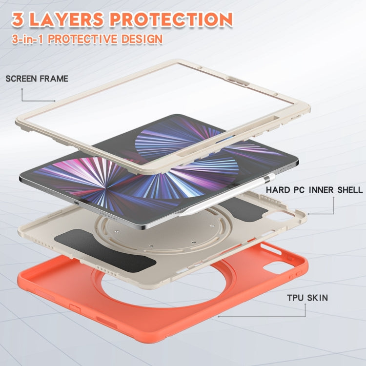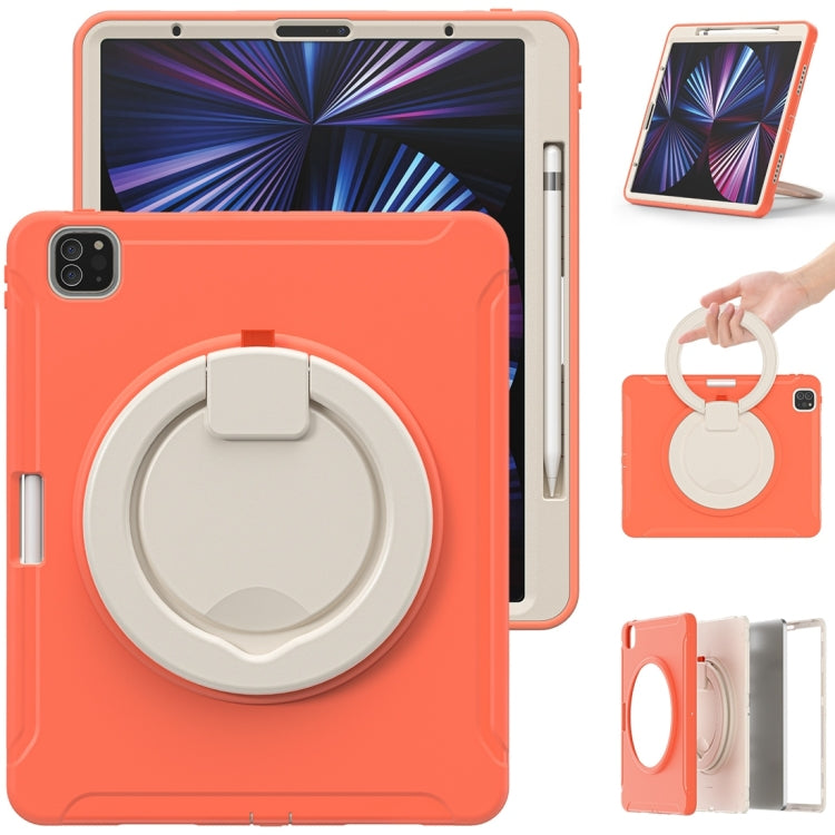 For iPad Pro 12.9 2022 / 2021 Shockproof TPU + PC Protective Tablet Case with 360 Degree Rotation Foldable Handle Grip Holder & Pen Slot(Living Coral)
