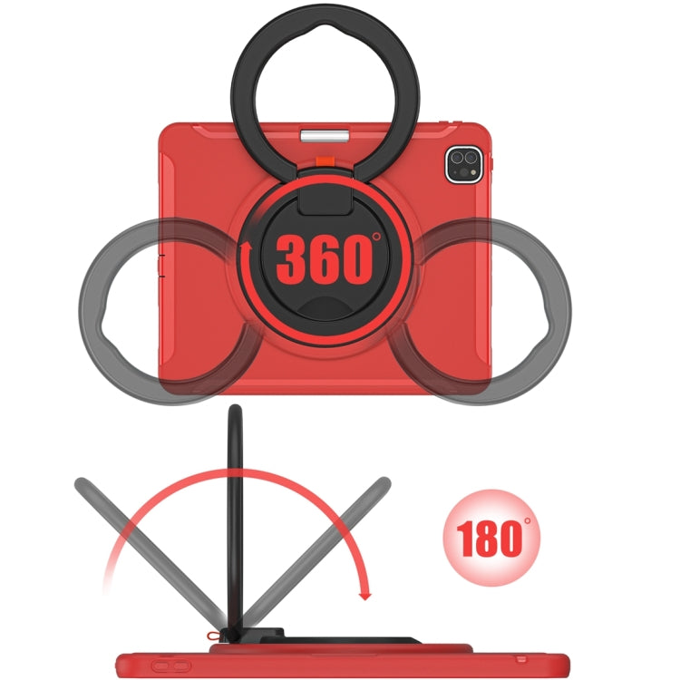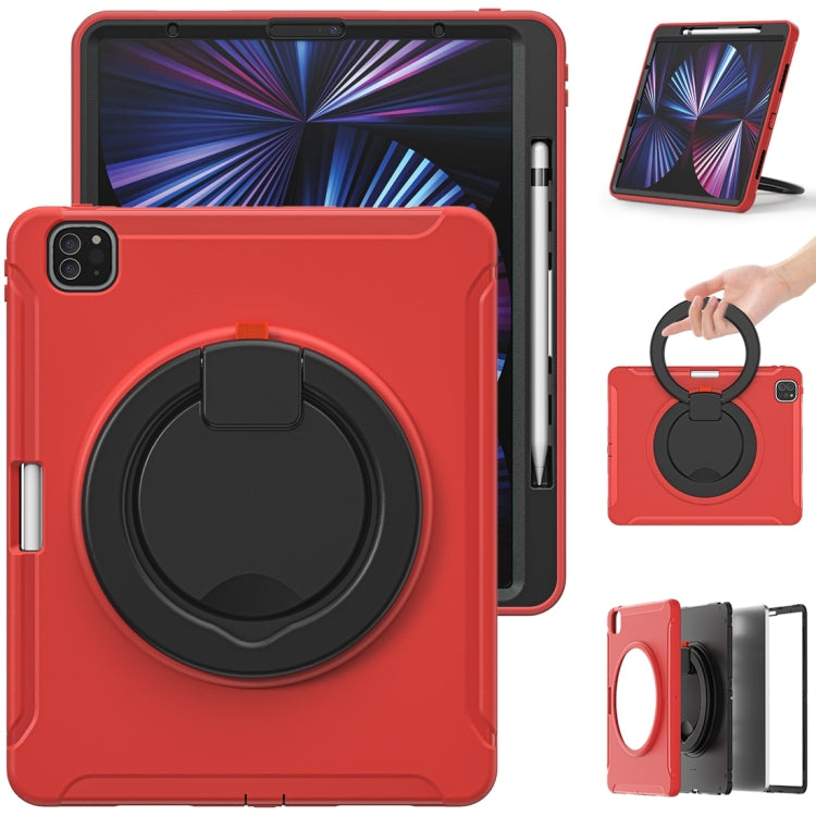 For iPad Pro 12.9 2022 / 2021 Shockproof TPU + PC Protective Tablet Case with 360 Degree Rotation Foldable Handle Grip Holder & Pen Slot(Red)
