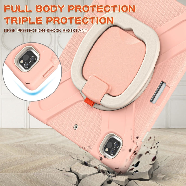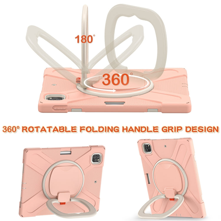 For iPad Pro 12.9 2022 / 2021 Silicone + PC Protective Tablet Case with Holder & Shoulder Strap(Rose Gold)
