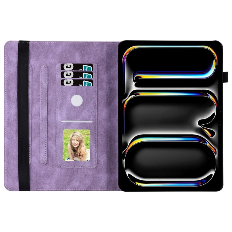 For iPad Pro 13 2024 Big Butterfly Embossed Leather Tablet Case(Purple)