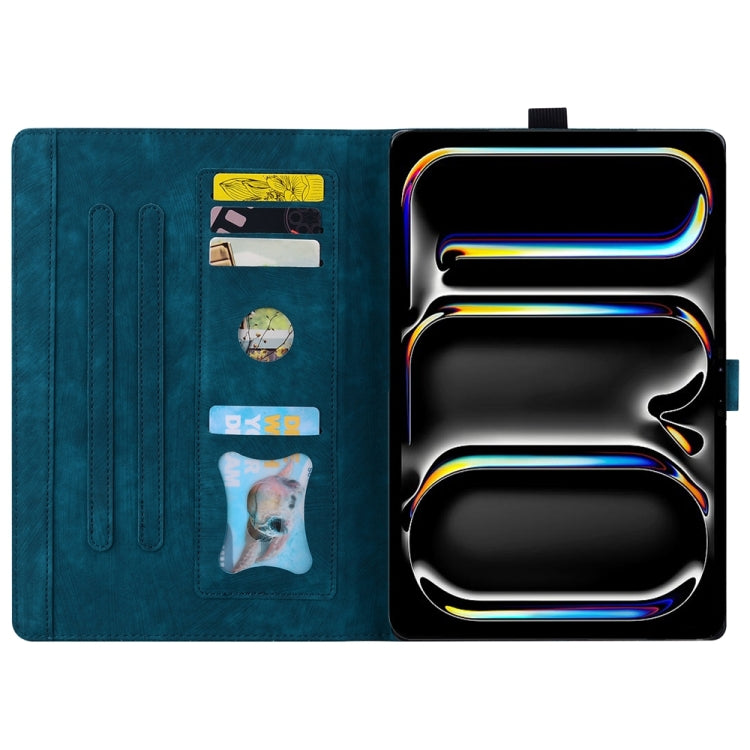 For iPad Pro 13 2024 Cartoon Sakura Cat Embossed Smart Leather Tablet Case(Blue)