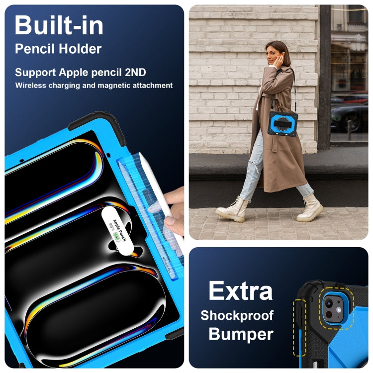 For iPad Pro 13 2024 Contrast Color Robot Silicone Hybrid PC Tablet Case(Black Blue)
