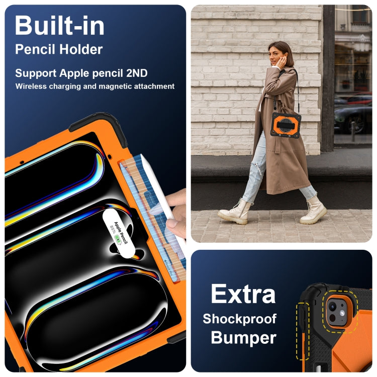 For iPad Pro 13 2024 Contrast Color Robot Silicone Hybrid PC Tablet Case(Black Orange)