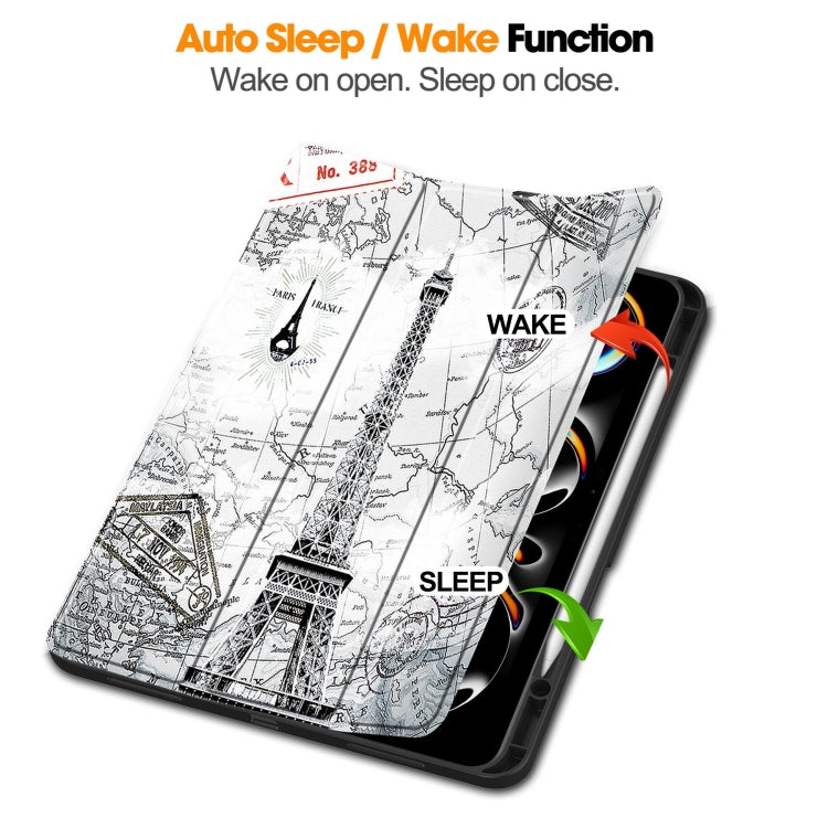 For iPad Pro 13 2024 Custer Painted 3-Fold Holder Smart Leather Tablet Case with Pen Tray(Eiffel Tower)