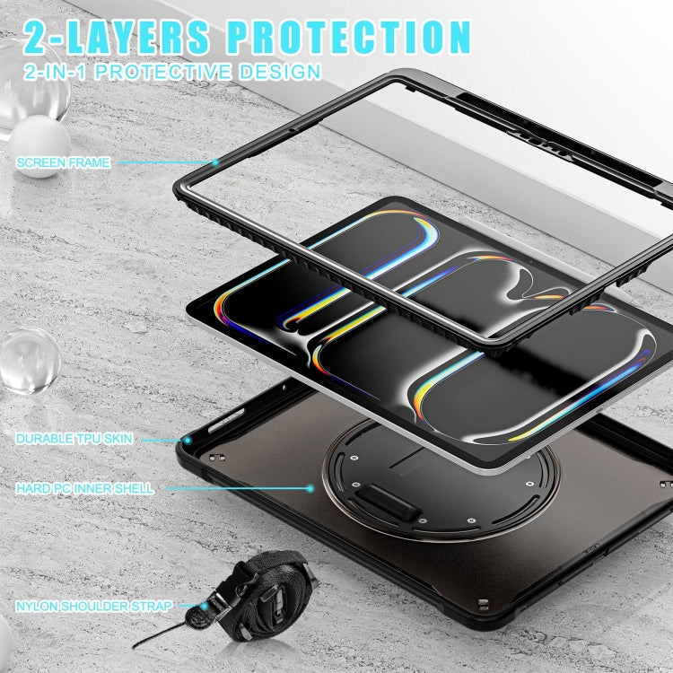 For iPad Pro 13 2024 Heavy Duty Hybrid Tablet Case with Hand Grip & Strap(Black)