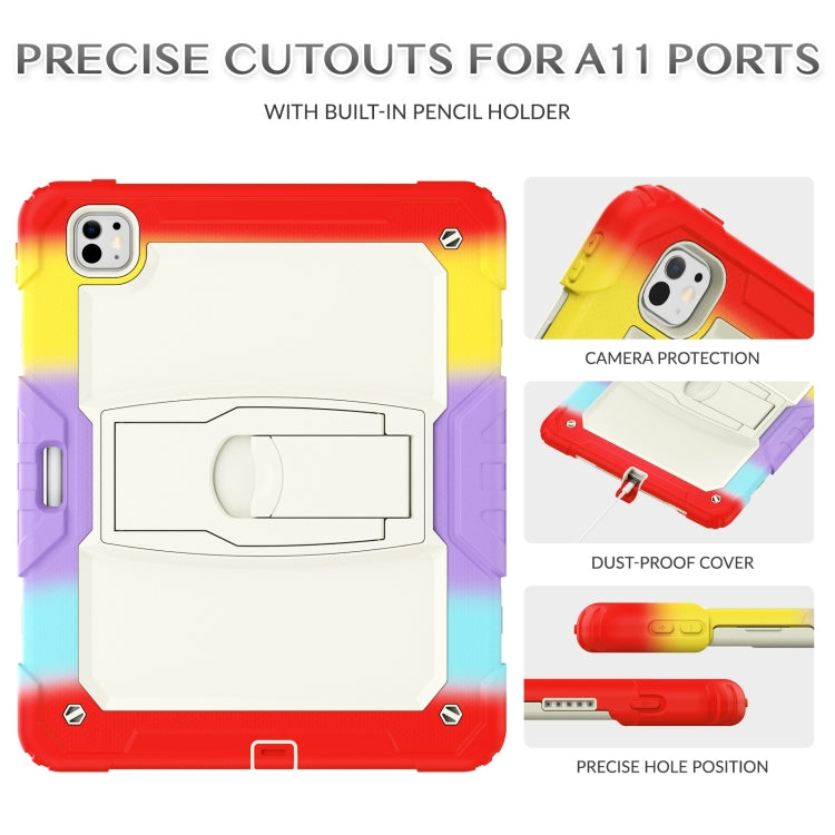 For iPad Pro 13 2024 Silicone Hydric PC Tablet Case with Shoulder Strap & Holder(Camouflage Red)