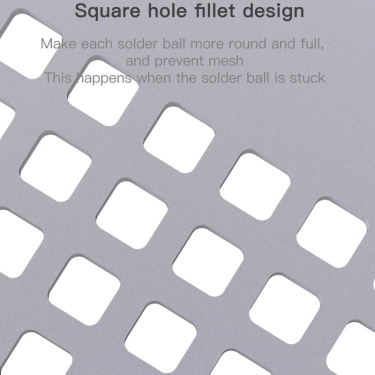4. The square hole rounded corner design makes each solder ball more round and full, and also prevents the mesh from getting stuck with the solder ball