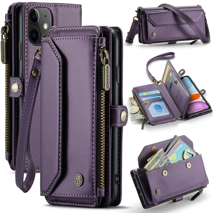 For iPhone 11 CaseMe C36 Card Slots Zipper Wallet RFID Anti-theft Leather Phone Case(Purple)
