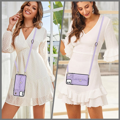 For iPhone 11 Crossbody Rhombic Horizontal Wallet Leather Phone Case(Purple)