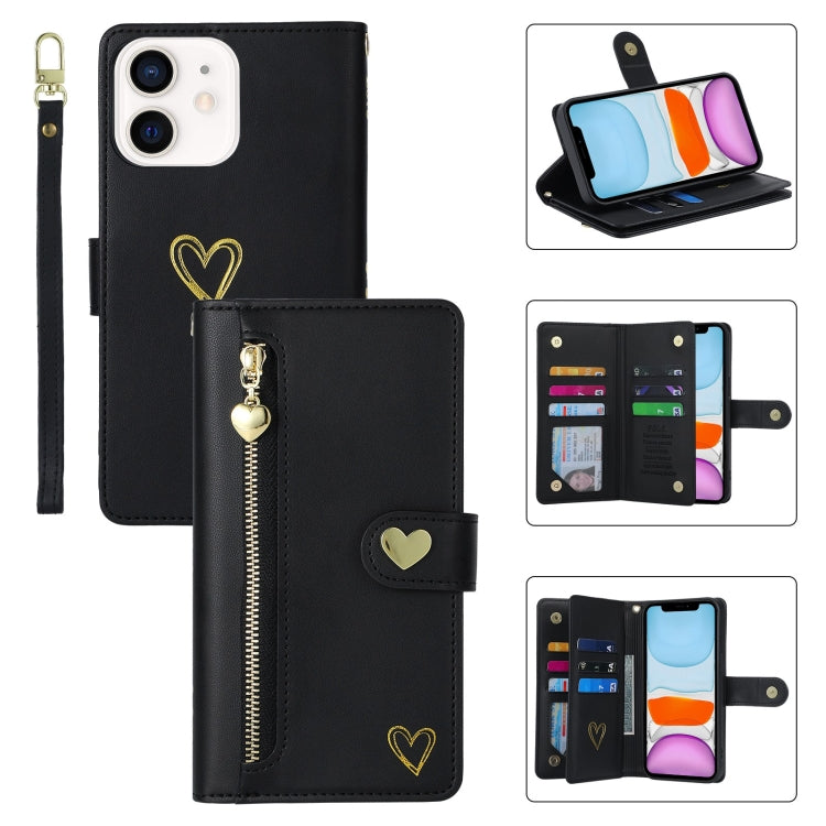 For iPhone 11 POLA Love Multi-Card Slots Zipper Wallet Leather Phone Case(Black)