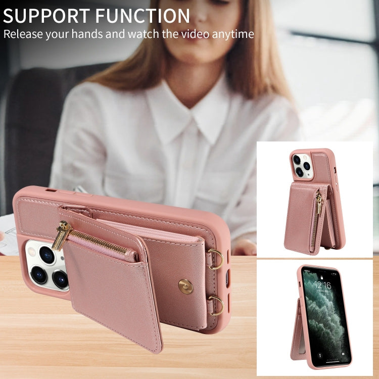 For iPhone 11 Pro Crossbody Lanyard Zipper Wallet Leather Phone Case(Rose Gold)