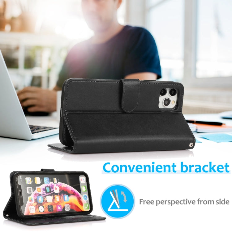 For iPhone 11 Pro Max Calf Texture 2 in 1 Detachable Magnetic Back Cover Horizontal Flip Leather Case with Holder & Card Slots & Wallet & Photo Frame (Black)