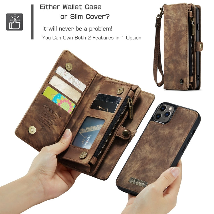 For iPhone 11 Pro Max CaseMe-008 Detachable Multifunctional Horizontal Flip Leather Case with Card Slot & Holder & Zipper Wallet & Photo Frame (Brown)