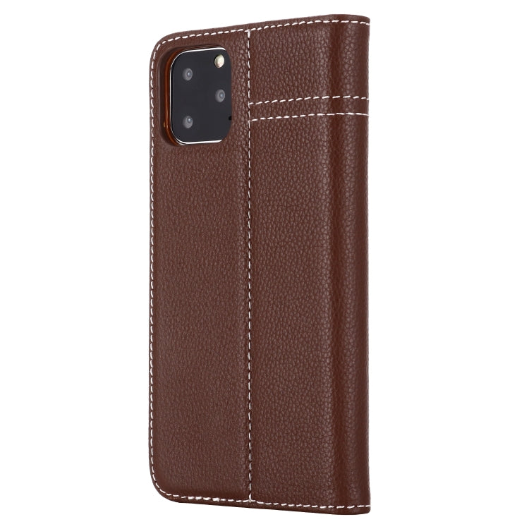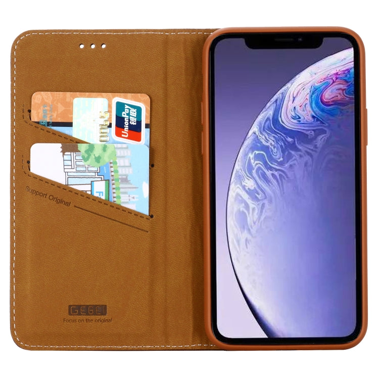 For iPhone 11 Pro Max GEBEI Top-grain Leather Horizontal Flip Protective Case with Holder & Card Slots(Brown)