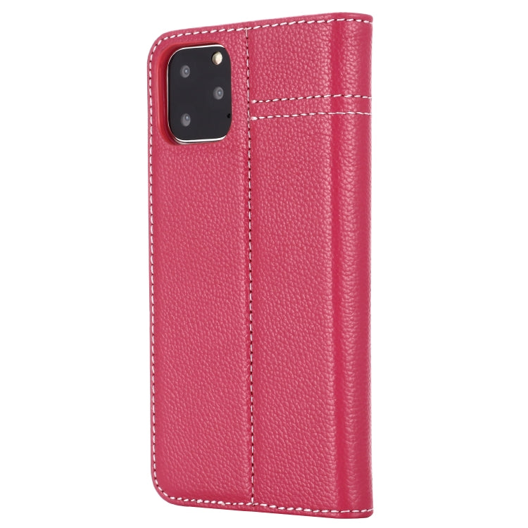 For iPhone 11 Pro Max GEBEI Top-grain Leather Horizontal Flip Protective Case with Holder & Card Slots(Rose Red)